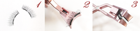 - Place eyelashes onto the magnet part of Lasher. Be sure the magnetic strips face each other.